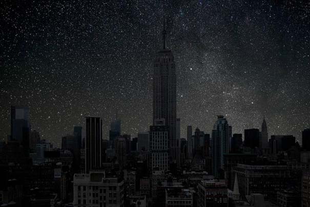 Ο καλλιτέχνης Thierry Cohen έριξε, με τη βοήθεια του photoshop, μεγάλες πόλεις του κόσμου στο μαύρο σκοτάδι.