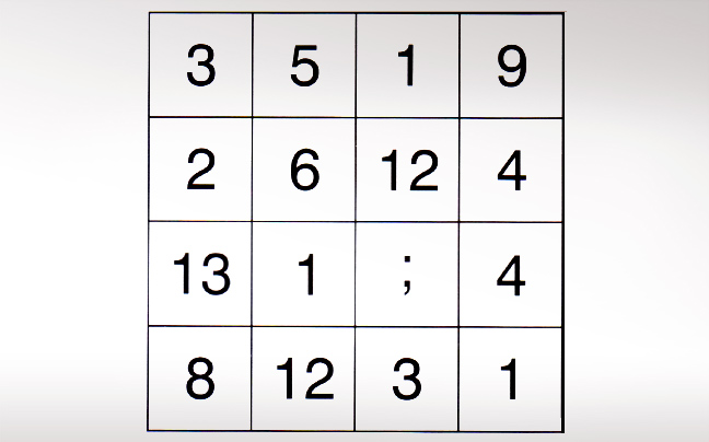Ο μεγαλύτερος αριθμός σε κάθε στήλη και γραμμή είναι το άθροισμα όλων των υπόλοιπων αριθμών που εμφανίζονται στην ίδια γραμμή ή στήλη.