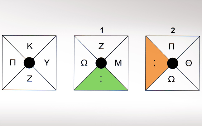 Να βρείτε τα γράμματα που λείπουν από τα τετράγωνα 1 και 2.