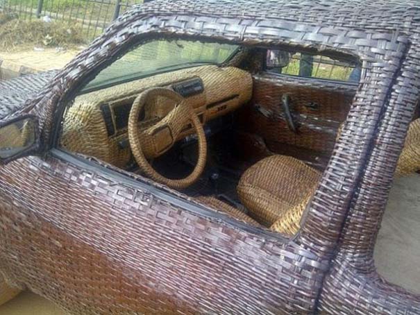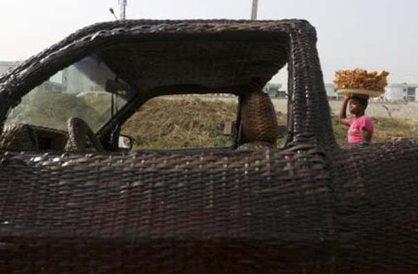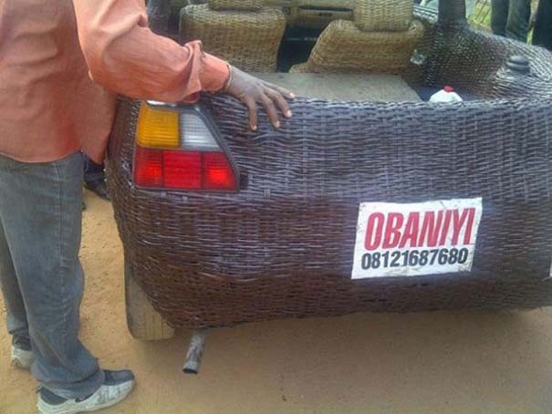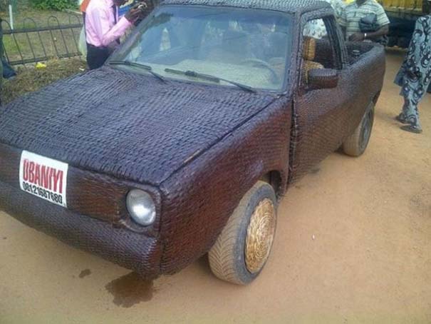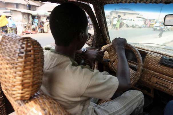 Το αυτοκίνητο είναι καλυμμένο με επένδυση από ζαχαροκάλαμο και κυκλοφορεί στους δρόμους του Ibadan στη Νιγηρία.