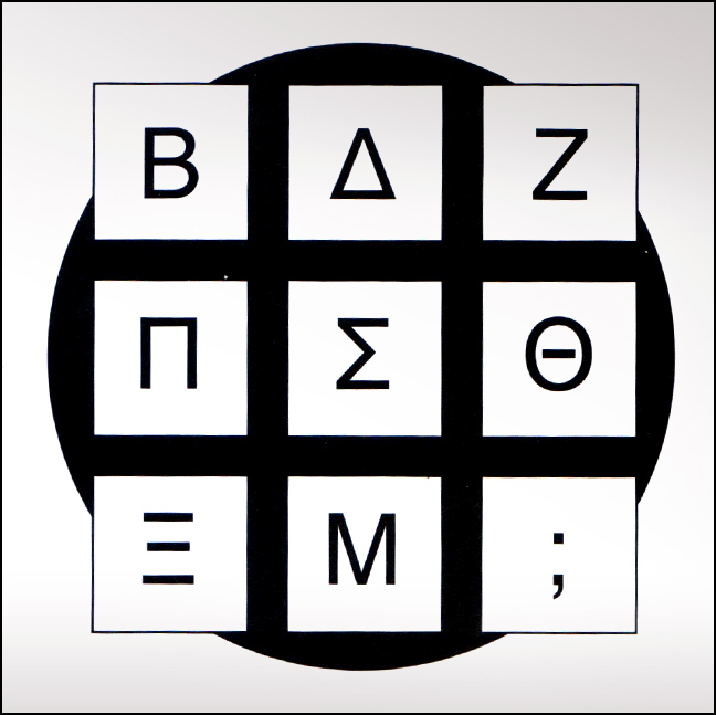 Λείπει το γράμμα Κ. ξεκινάμε από την πάνω αριστερή κορυφή και κινούμαστε από έξω προς το κεντρικό τετράγωνο, σπειροειδής κίνηση, παραλείποντας σε κάθε βήμα ένα γράμμα.