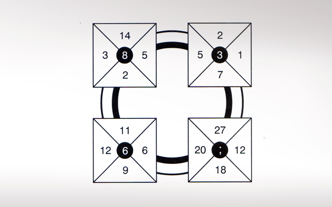 Είναι ο 17. Προσθέτουμε τα νούμερα που βρίσκονται στην αντίστοιχη θέση στα υπόλοιπα τρία κουτιά.