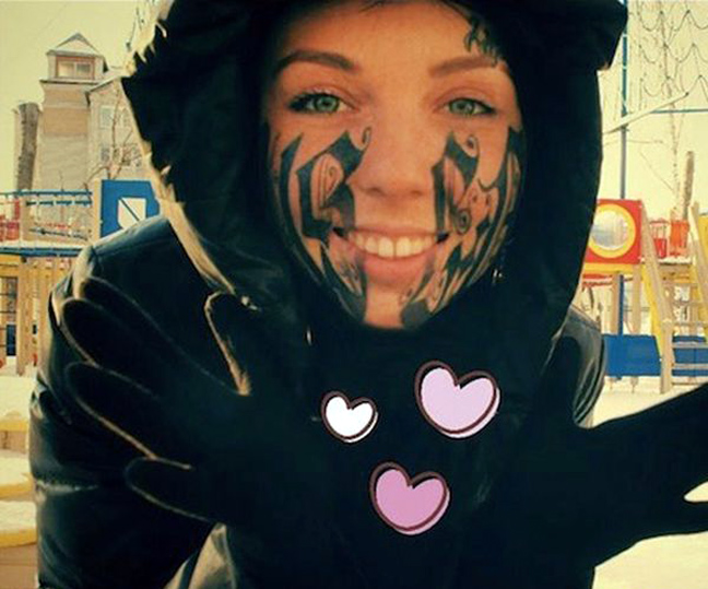 H νεαρή Lesya όταν συνάντησε τον Rouslan Toumaniantz τον ερωτεύτηκε τόσο πολύ που έκανε τατουάζ στο πρόσωπό της με το όνομα του αγαπημένου της.