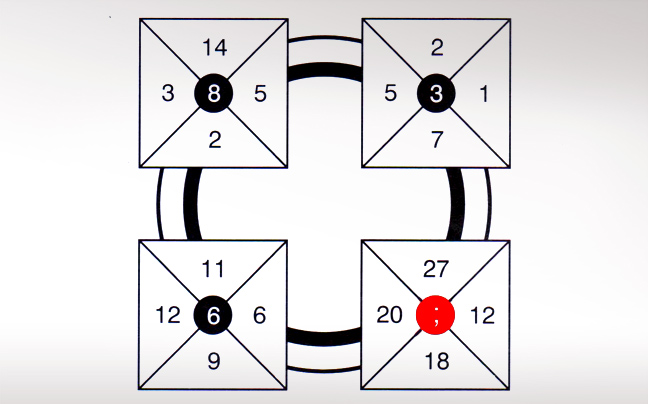 Είναι ο 17. Προσθέτουμε τα νούμερα που βρίσκονται στην αντίστοιχη θέση στα υπόλοιπα τρία κουτιά.
