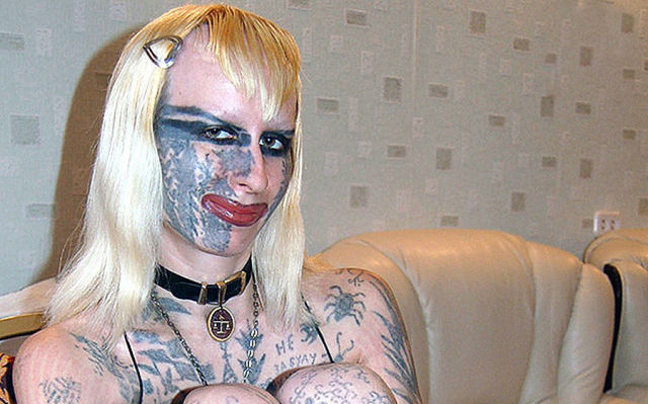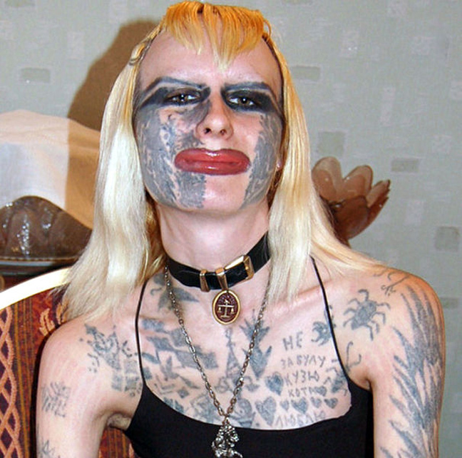 Η 30χρονη Evdokia Voronova από τη Ρωσία έχει καλύψει το σώμα της και το πρόσωπό της με τατουάζ που έκανε μόνη της χρησιμοποιώντας μελάνι και βελόνα ραψίματος.