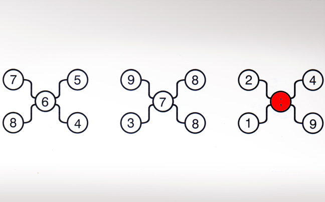 Η λύση: Ο 4. Προσθέτουμε τους τέσσερις εξωτερικούς αριθμούς και διαιρούμε με το 4.