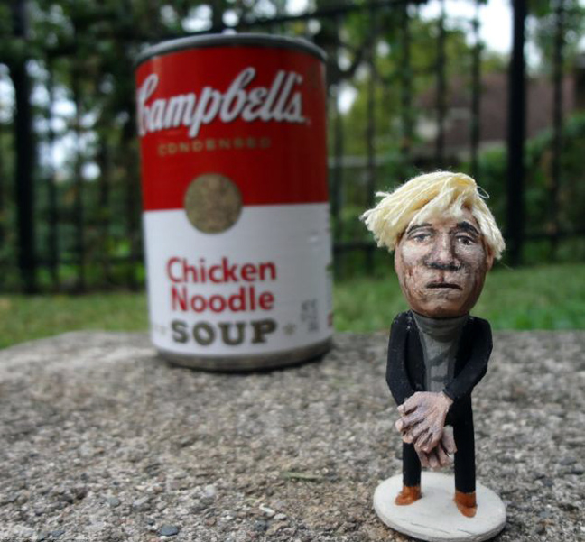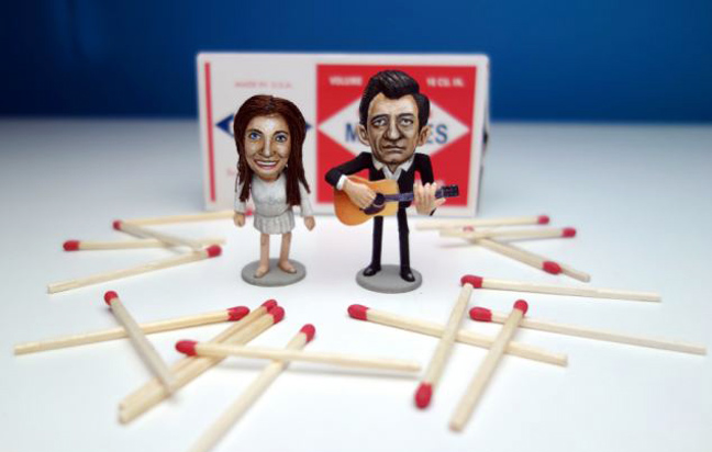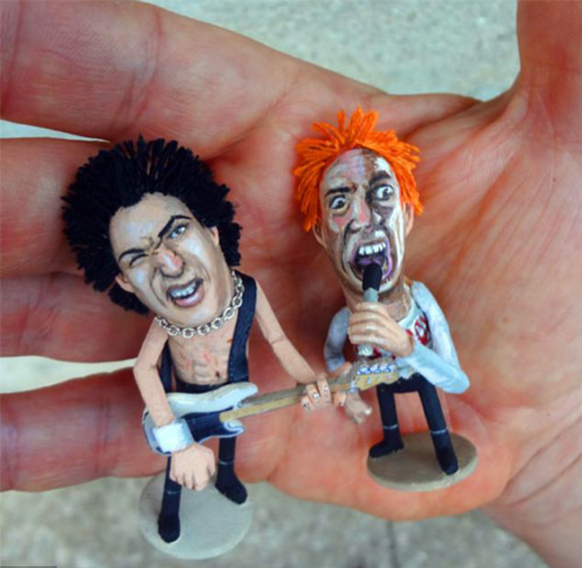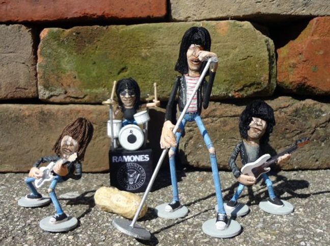 Πάνω σε αυτά ζωγραφίζει διάφορα γνωστά πρόσωπα από τον Άλφρεντ Χίτσκοκ και τον Tζέιμς Μπράουν μέχρι και μέλη των Sex Pistols.
