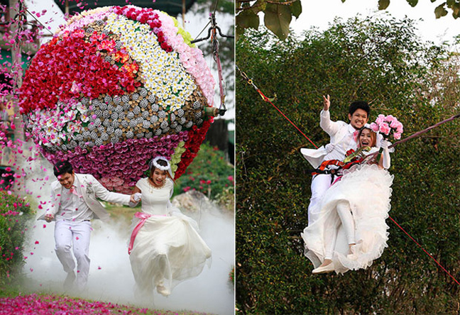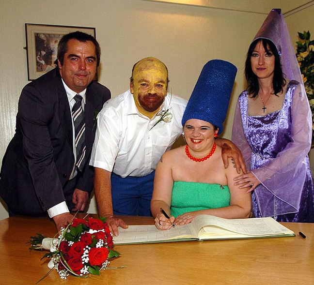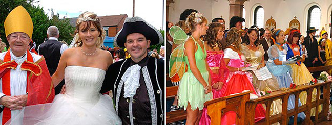 Δεν είναι λίγα τα ζευγάρια που προκειμένου να πρωτοτυπήσουν αφήνουν στην άκρη τα λευκά νυφικά και τα κοστούμια και ντύνονται ό, τι άλλο τους έρθει στο μυαλό.