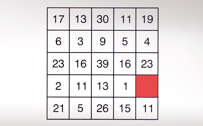 Ο αριθμός στο τετράγωνο που βρίσκεται στο κέντρο κάθε γραμμής και στήλης είναι το σύνολο τόσο των αριθμών που βρίσκονται αριστερά του και των αριθμών που βρίσκονται δεξιά του.
