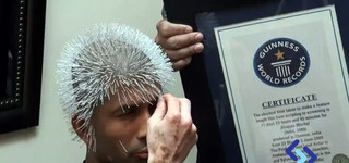 Για αυτό του το εγχείρημα έχει κατακτήσει δύο φορές το ρεκόρ Γκίνες, μία το 2011 τοποθετώντας 2020 βελόνες και άλλη μία ένα χρόνο αργότερα ξεπερνώντας το ρεκόρ του κατά 80 βελόνες.