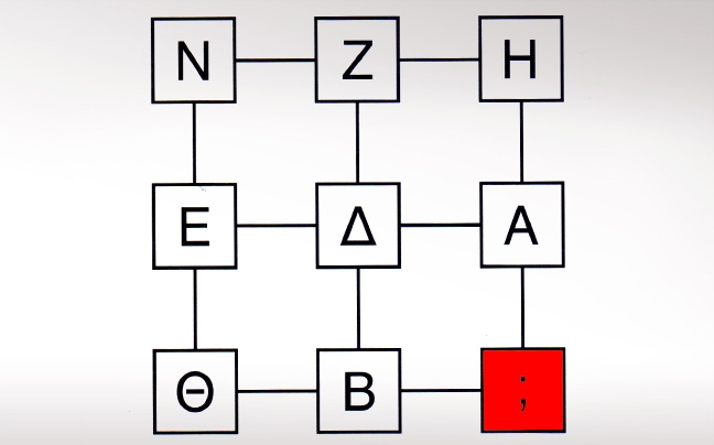Θεωρούμε την αντιστοιχία Α=1, Β=2 κ.λπ. Αφαιρούμε από την τρίτη γραμμή και στήλη από την πρώτη και προκύπτει η δεύτερη.
