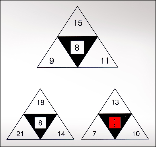 Προσθέτουμε τα ψηφία του αριθμού που προκύπτει από το άθροισμα των τριών αριθμών που υπάρχουν μέσα στο τρίγωνο.