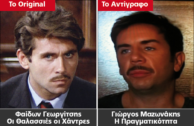 Όσοι έχετε φάει κόλλημα και σπάτε το κεφάλι σας να βρείτε ποιόν σας θυμίζει με το μουστάκι του, ήρθε η ώρα να ηρεμήσετε: Η ομοιότητα με τον Φαίδωνα Γεωργίτση, είναι εκπληκτική. Μάλλον λοιπόν ο δημοφιλής τραγουδιστής, εμπνεύστηκε τη νέα του εμφάνιση από τις Θαλασσιές τις Χάντρες. Γι’ αυτό και όταν μιλάει για την κρίση στα μαγαζιά, θυμίζει τόσο πολύ ταινία από τη δεκαετία του ’60.