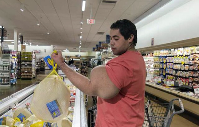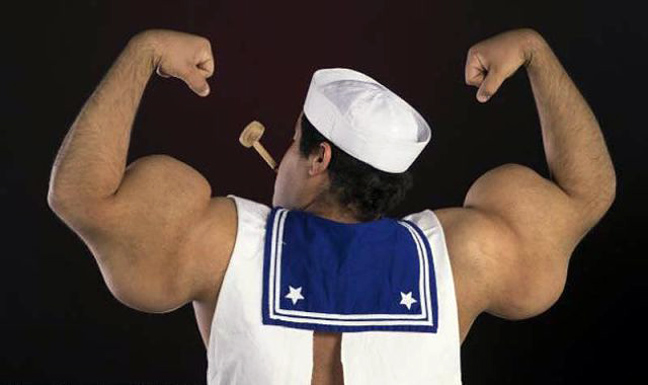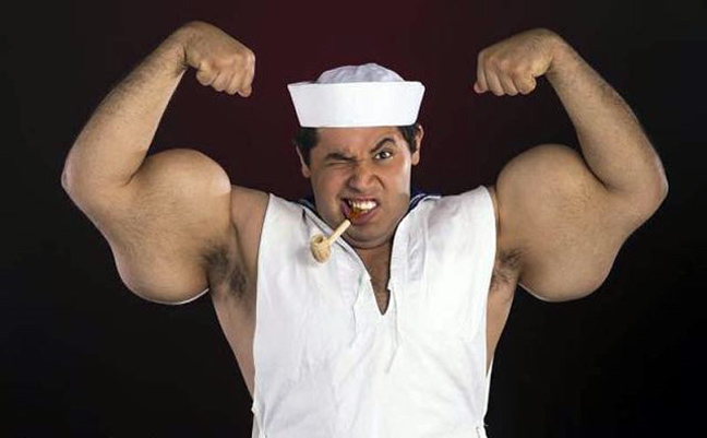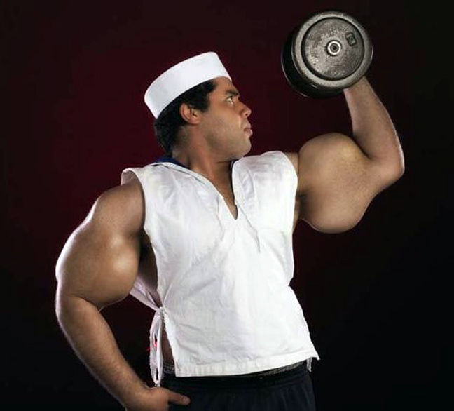 Ο Ποπάι στην πραγματική ζωή είναι 24 ετών, ονομάζεται Mustafa Ismail και οι δικέφαλοί του φτάνουν σε περιφέρεια τα 78cm.