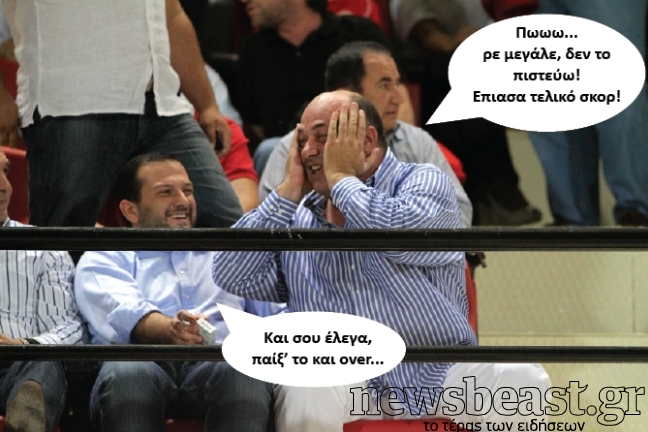 Το στιγμιότυπο είναι από το γήπεδο του Βόλου όπου ο τοπικός Ολυμπιακός πέτυχε χτες σπουδαία νίκη επί της ΑΕΚ με 3-1. Ο φωτογραφικός φακός συνέλαβε τους προέδρους των δύο ομάδων (Αδαμίδη της ΑΕΚ και Μπέο του Βόλου) σε φάση που… εμπνέει!