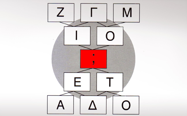 Θεωρούμε την αντιστοιχία α=1, β=2. Προσθέτουμε τα γράμματα που βρίσκονται σε κουτιά που ενώνονται μεταξύ τους.