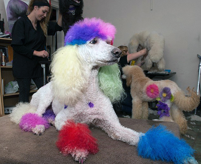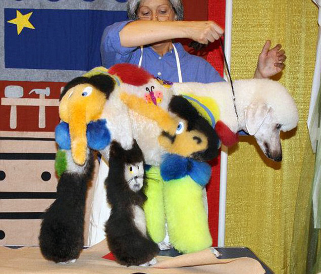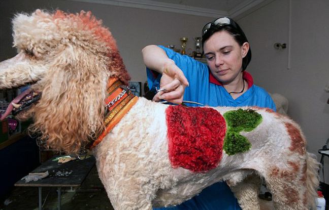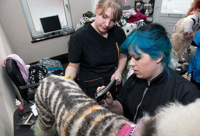 Στο τελικό αποτέλεσμα φτάνουν αφού πρώτα έχουν κουρέψει και έχουν βάψει τη γούνα τους ανάλογα με το σχέδιο που θέλουν να δώσουν.