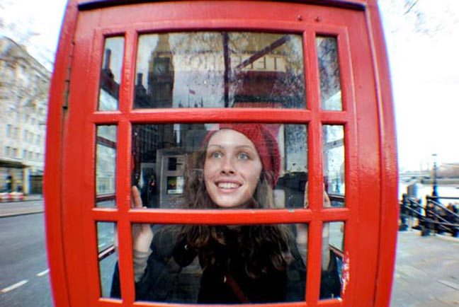 Ποζάροντας στο Βρετανικό τηλεφωνικό θάλαμο