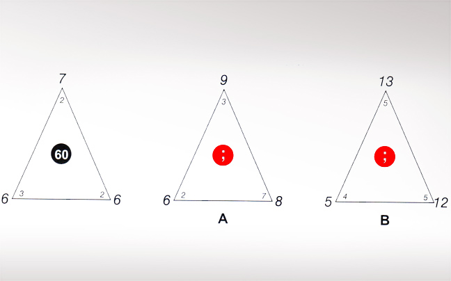 Αφαιρούμε από το εξωτερικό νούμερο της κάθε γωνίας το εσωτερικό νούμερο που βρίσκεται στην ίδια γωνία. Στη συνέχεια πολλαπλασιάζουμε τα τρία αποτελέσματα.