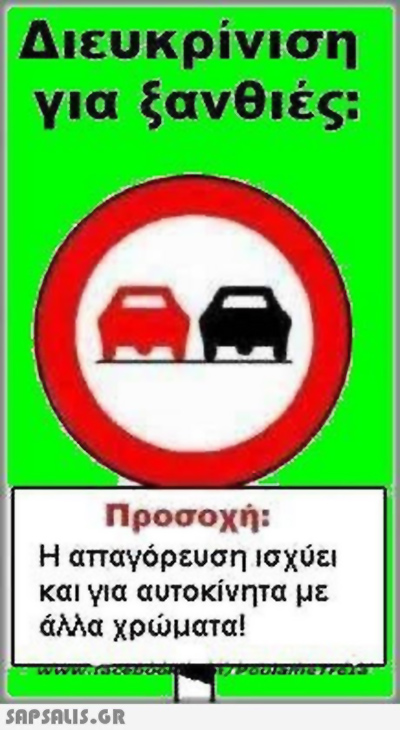 Ο,ΤΙ ΝΑ 'ΝΑΙ #αστεία φωτογραφία Ταμπέλα αποκλειστικά για ξανθιές οδηγούς Απαραίτητη η διευκρίνιση 03·05·2013 20:29 1 σχόλια