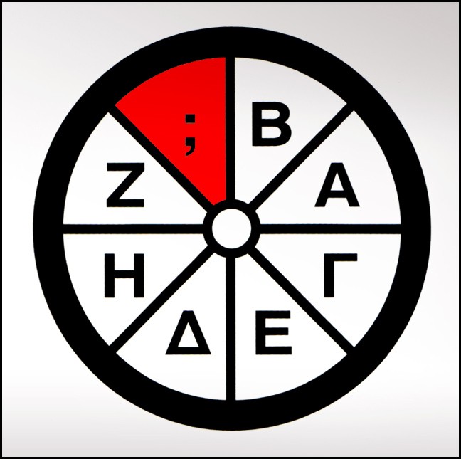 Ξεκινάμε από το Β και κινούμαστε δεξιόστροφα. Το Β είναι το πρώτο σύμφωνο, μετά γράφουμε το πρώτο φωνήεν, ύστερα το δεύτερο σύμφωνο, το δεύτερο φωνήεν κτλ.