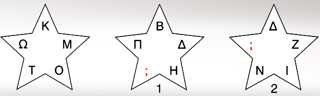 Τα Λ και τα Σ αντίστοιχα. Ξεκινάμε απο την κορυφή, κινούμαστε δεξιόστροφα και παραλείπουμε σε κάθε βήμα 1, 2, 3, και 4 γράμματα αντίστοιχα