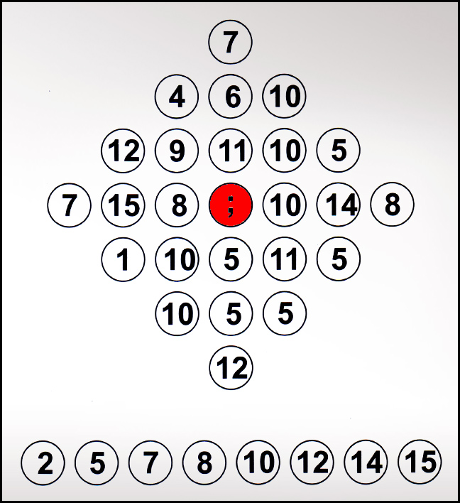 Η λύση: Ο αριθμός 10. Κάθε διαγώνιος γραμμή δίνει άθροισμα 30.