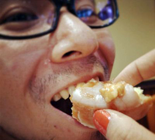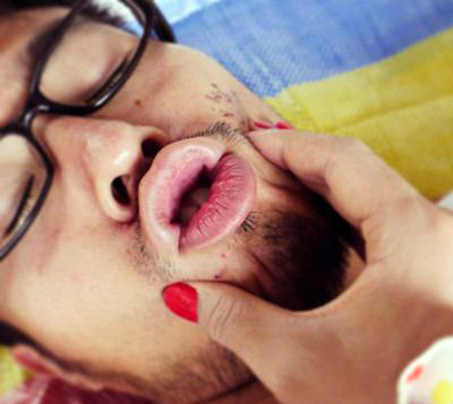 Αφού έχει ολοκληρώσει τη διαδικασία της μεταμφίεσης παίρνει τις πιο ευφάνταστες πόζες σε ένα εστιατόριο και κάνει διάφορες τσαχπινιές με το χέρι του σαν αυτές που κάνουν τα κορίτσια στα αγόρια τους.
