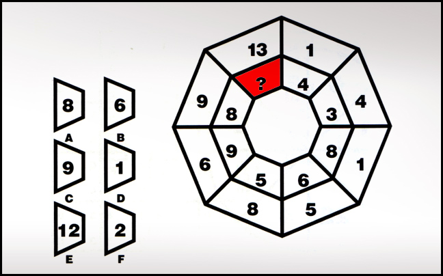 Η λύση: Ο αριθμός 6 (το β). Τα δύο τμήματα κάθε τομέα προστίθενται. Το άθροισμα αυξάνεται κατά δύο κάθε φορά.