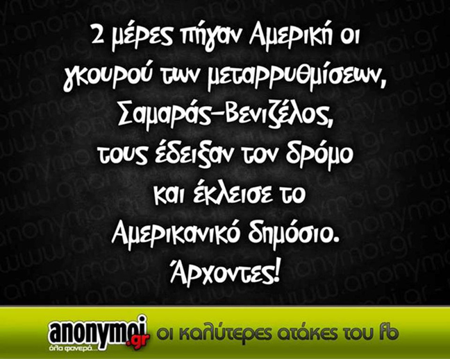 Ο,ΤΙ ΝΑ 'ΝΑΙ #αστεία φωτογραφία Τα αποτελέσματα των γκουρού των μεταρρυθμίσεων Στην Αμερική Σαμαράς-Βενιζέλος 03·10·2013 17:35 1 σχόλια
