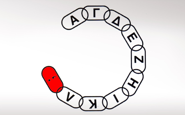 Η λύση Λείπει το Μ. Η αλυσίδα αποτελείται μόνο από γράμματα που σχηματίζονται με ευθείες γραμμές.