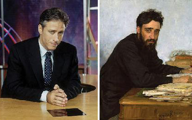 O παρουσιαστής Jon Stewart με τον Ρώσο καλλιτέχνη Illya Repin