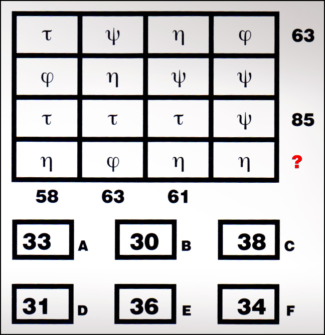 Η λύση Το 34 δηλαδή το F. η = 8, φ = 10, τ = 20, ψ = 25