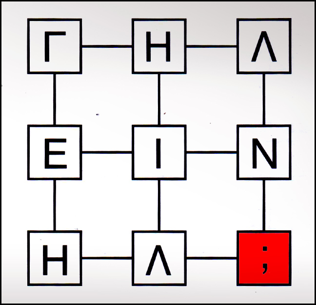 Παραλείπουμε τρία γράμματα, καθώς μετακινούμαστε από στήλη σε στήλη και ένα γράμμα από γραμμή σε γραμμή.