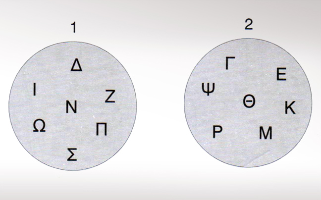 Τα υπόλοιπα γράμματα τοποθετημένα με τη σειρά απέχουν μεταξύ τους ένα, δύο, τρία κλπ. γράμματα.