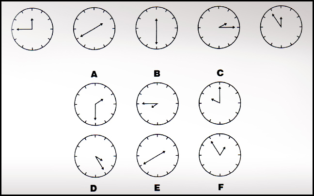 Ο λεπτοδείκτης κινείται προς τα πίσω πέντε λεπτά, μετά 10 λεπτά, μετά δεκαπέντε, κ.ο.κ. Ο ωροδείκτης κινείται δύο μπροστά, δύο πίσω, δύο μπροστά κ.ο.κ.