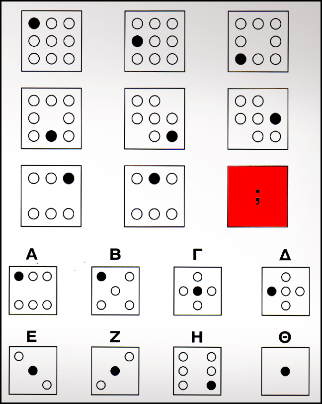 Μετακινούμαστε από αριστερά προς δεξιά και από πάνω προς τα κάτω. Σε κάθε δύο βήματα αφαιρούμε ένα λευκό κύκλο, ενώ σε καθε βήμα μετακινούμε τον μαύρο κύκλο κατά μία θέση με φορά αντίθετη από αυτή των δεικτών του ρολογιού.