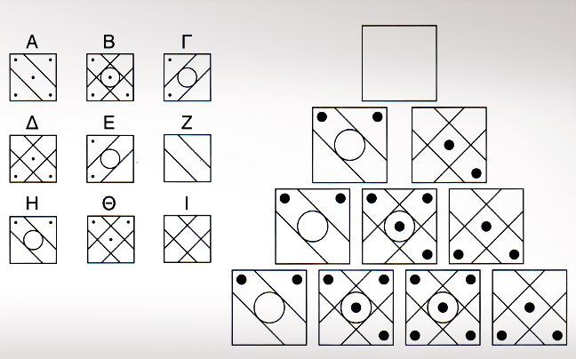 Το τετράγωνο Ζ. Κάθε τετράγωνο περιέχει σχήματα που εμφανίζονται και στα δύο τετράγωνα που υπάρχουν ακριβώς κάτω από αυτό.