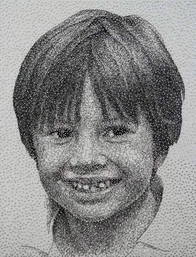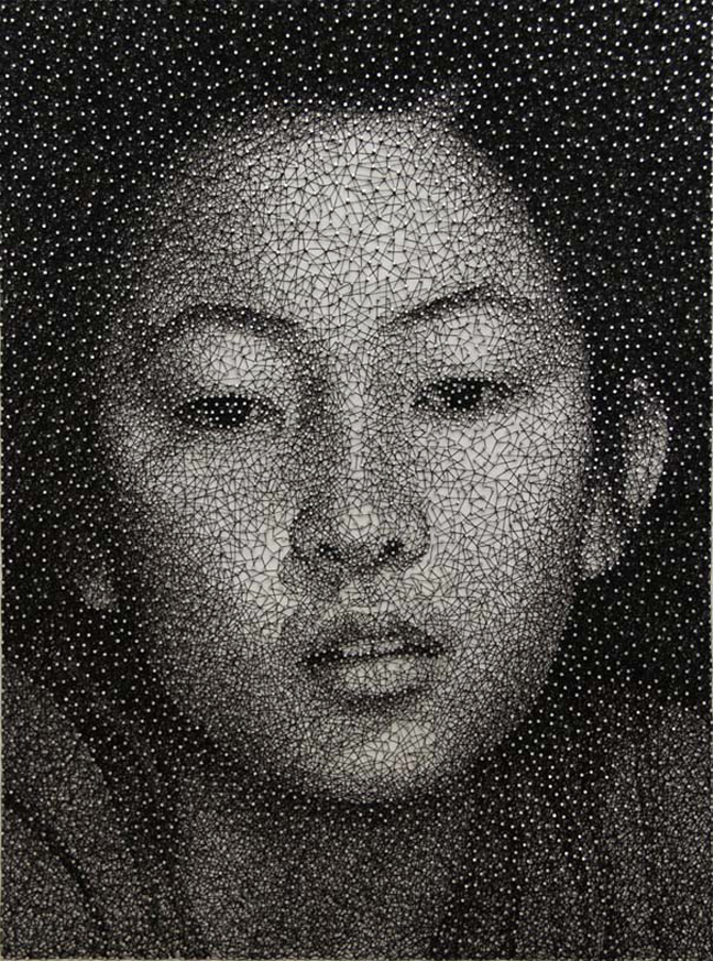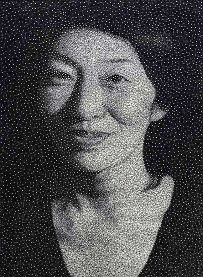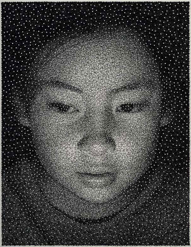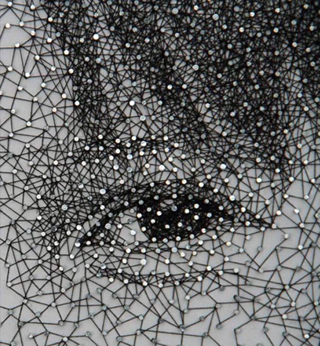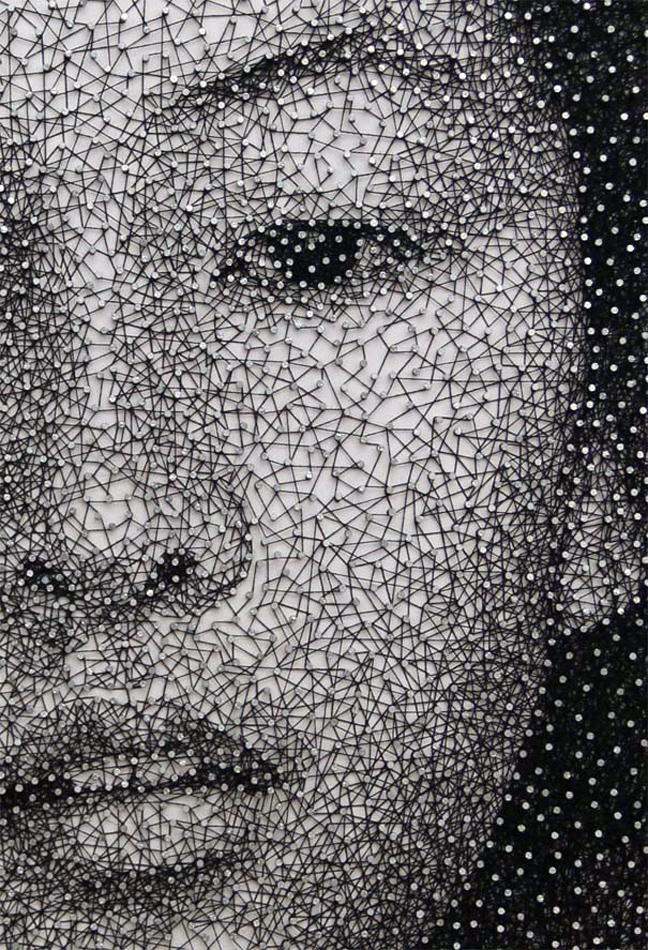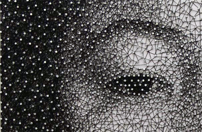Η Kumi Yamashita στη συλλογή της «Constellation» δημιουργεί εκπληκτικά πορτραίτα ανδρών και γυναικών χρησιμοποιώντας μια απλή, ενιαία κλωστή που τυλίγεται γύρω από χιλιάδες καρφιά.
