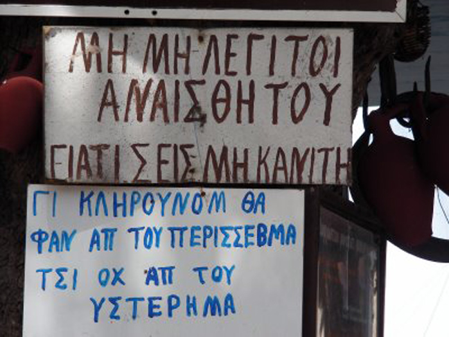 Μη με λέτε αναίσθητο, γιατί εσείς με κάνατε και οι κληρονόμοι θα φάνε από το περίσσευμα και όχι από το υστέρημα.
