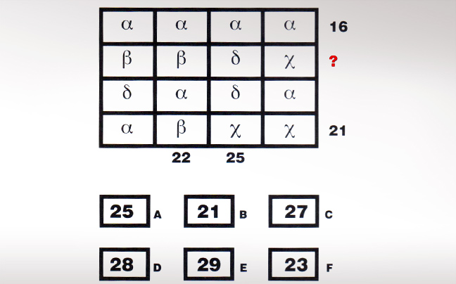 Ο,ΤΙ ΝΑ 'ΝΑΙ #Γρίφος Γρίφος: Ποιος αριθμός αντικαθιστά το ερωτηματικό; H λύση 02·12·2013 12:00 6 σχόλια Η λύση Το 27 δηλαδή το c α = 4, β = 7, χ = 5 και δ = 8