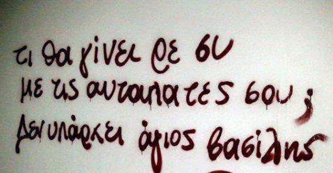 Ο,ΤΙ ΝΑ 'ΝΑΙ #made in greece#φωτογραφίες Όλη η σοφία στα συνθήματά τους «Διαβάζοντας» στο δρόμο 05·12·2013 11:33