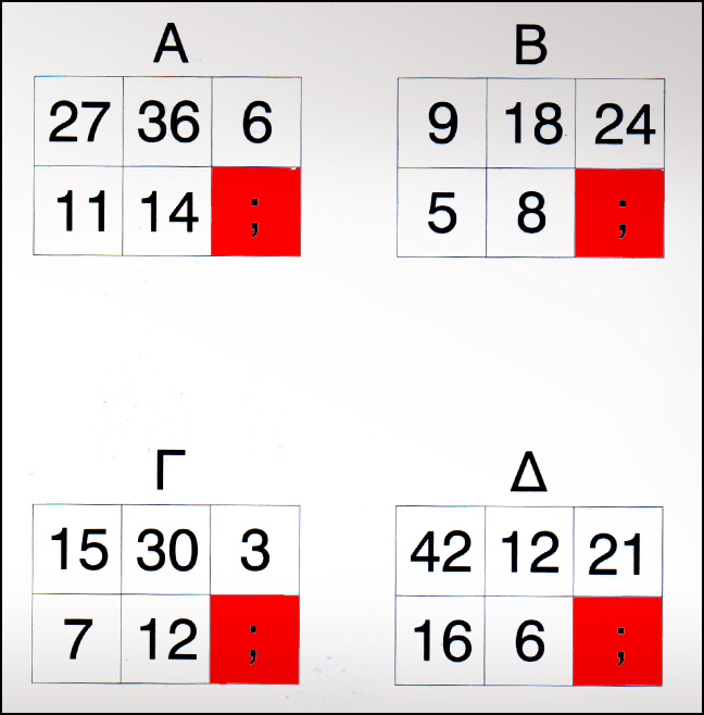 Α = 4, Β = 10, Γ = 3, Δ = 9