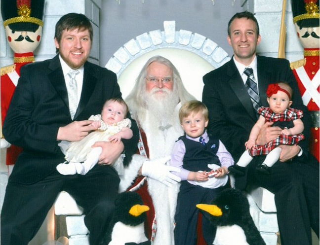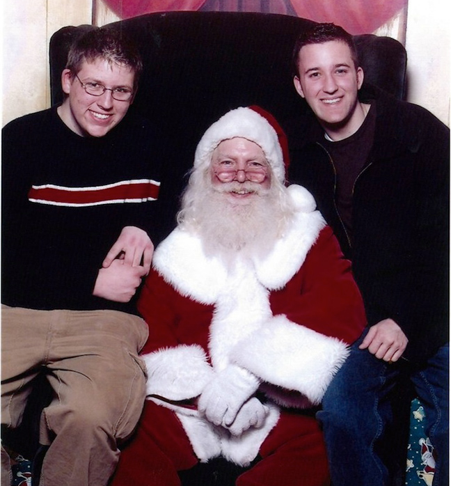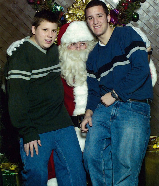Το «έθιμο» ξεκίνησε το 1980 που γεννήθηκε ο Mike και στο κόνσεπτ προστέθηκε το 1984 και ο Μartin. Κάθε Χριστούγεννα τα δύο αγόρια πηγαίνουν μαζί σε κάποιο εμπορικό κέντρο και βγάζουν την κλασική φωτογραφία στα πόδια του Αγίου για να την προσθέσουν στο οικογενειακό τους άλμπουμ.