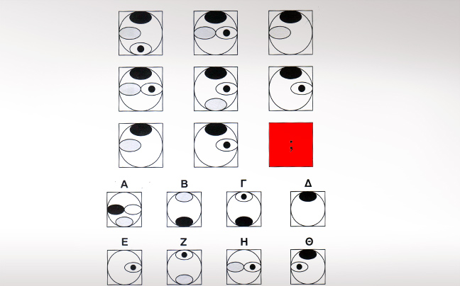 Στην τρίτη γραμμή ή στήλη φαίνονται τα σύμβολα που έχουν εμφανιστεί στα δύο προηγούμενα τετραγωνα στην ίδια θέση.