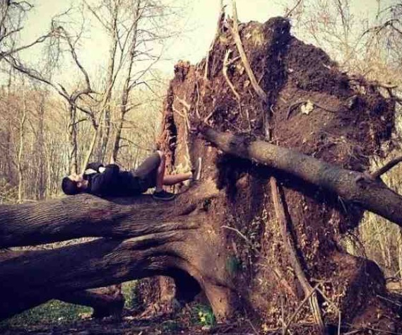Με την πρώτη ματιά φαίνεται ένας νεαρός να στέκεται σε έναν τεράστιο κορμό. Αλλά κάτι περίεργο συμβαίνει αφού στο background τα δέντρα δεν στέκονται κανονικά.