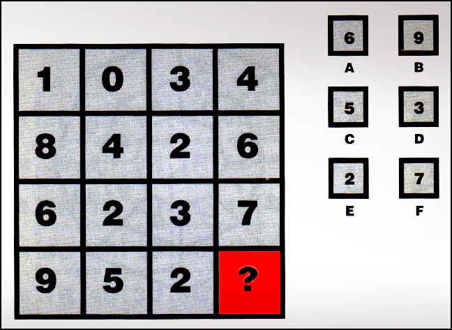 Η λύση Το 6 δηλαδή το Α. Σε κάθε σειρά το πρώτο ψηφίο πλην το δεύτερο ψηφίο συν το τρίτο ψηφίο, δίνει το τέταρτο.