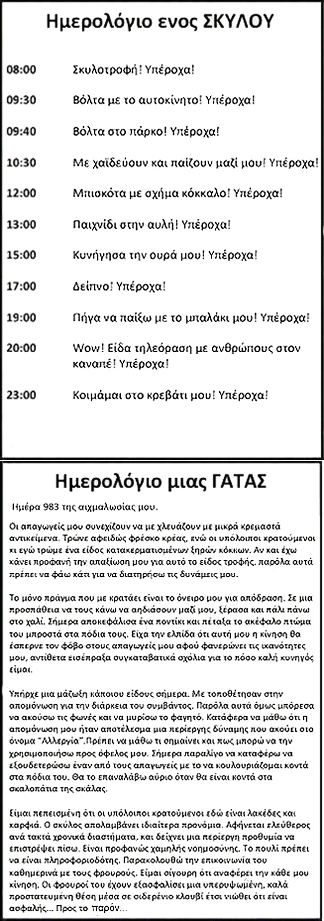 Ο,ΤΙ ΝΑ 'ΝΑΙ #φωτογραφίες Αν ο σκύλος και η γάτα έγραφαν ημερολόγιο Αποκαλύπτοντας τις ενδόμυχες σκέψεις τους 11·01·2014 18:10 1 σχόλια