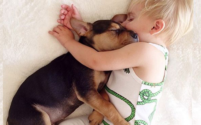 Ένα αξιολάτρευτο παιδί και ένα κουταβάκι αγκαλιά την ώρα του ύπνου ήταν αρκετά για να κάνουν τους χρήστες του διαδικτύου να τα λατρέψουν.