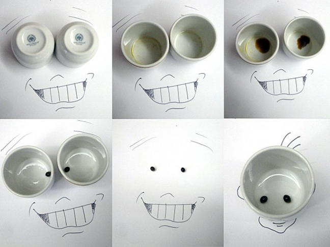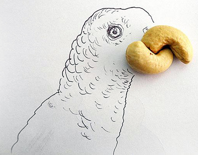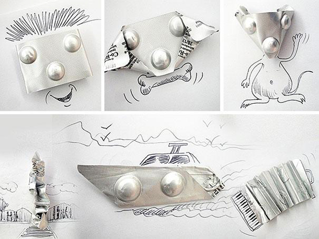 O καλλιτέχνης Bίκτορ Νούνες συνδυάζει καθημερινά αντικείμενα όπως μπισκότα, ψαλίδι, κούπες με τα σκίτσα του και δημιουργεί μοναδικές δημιουργίες.
